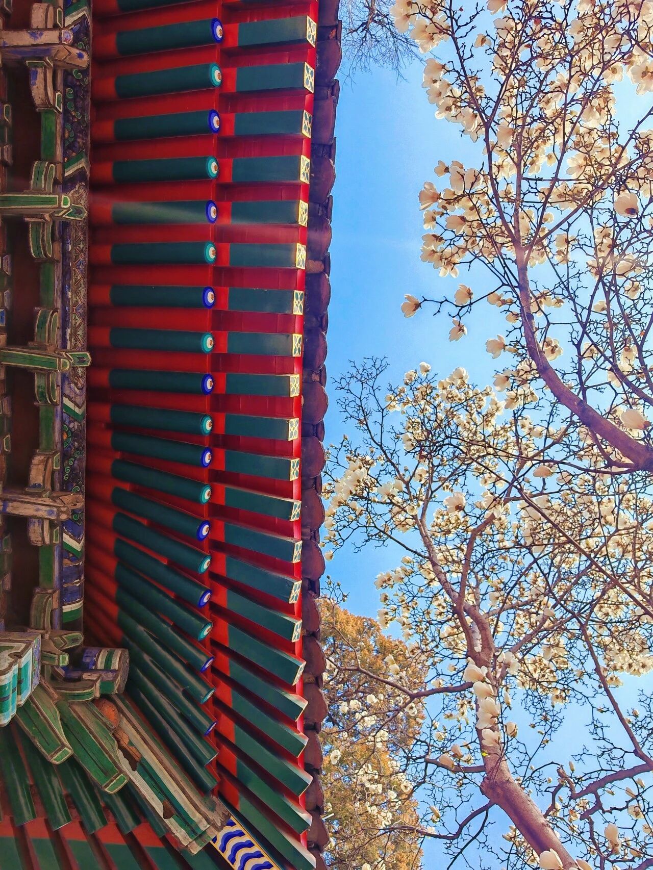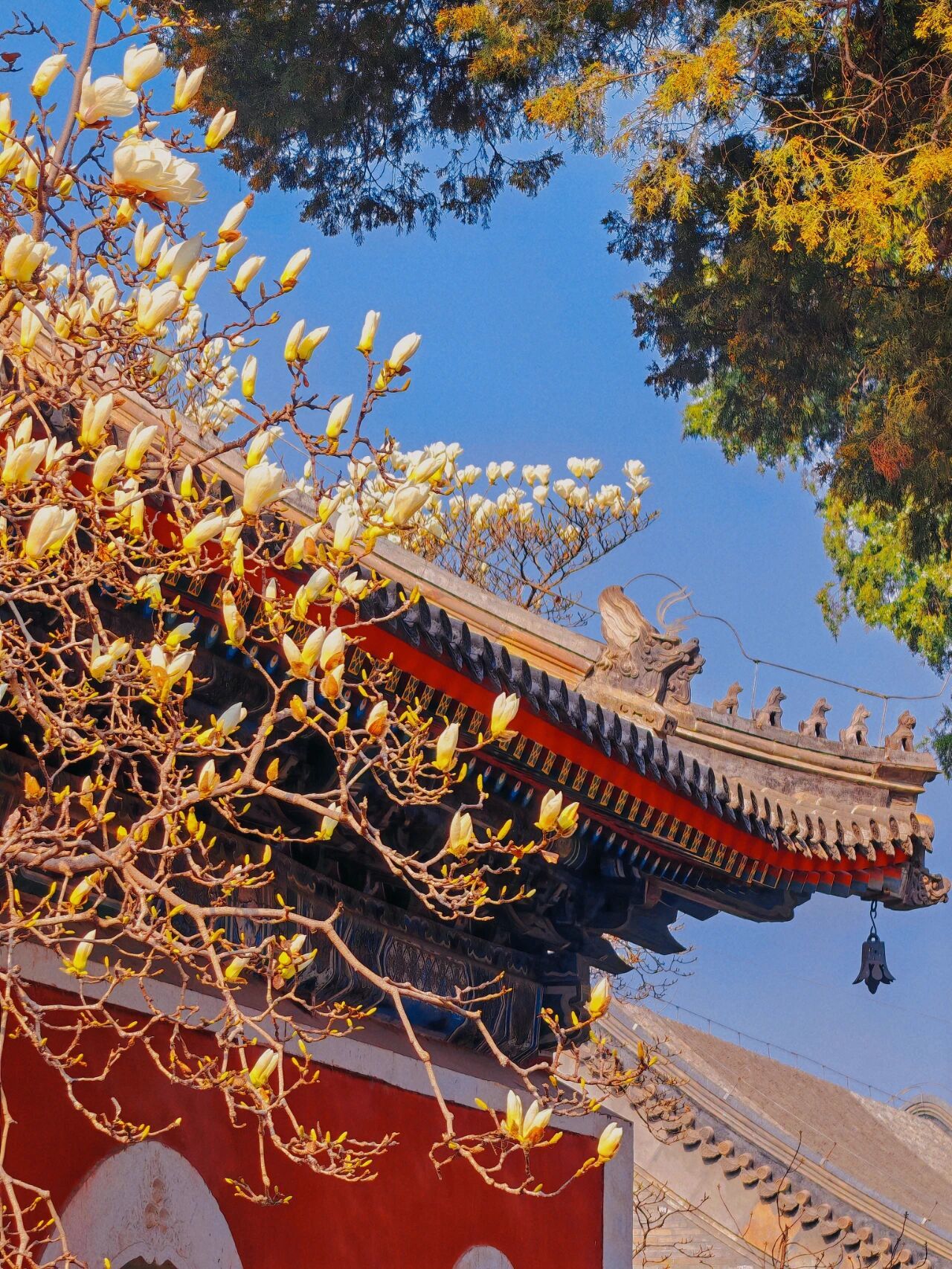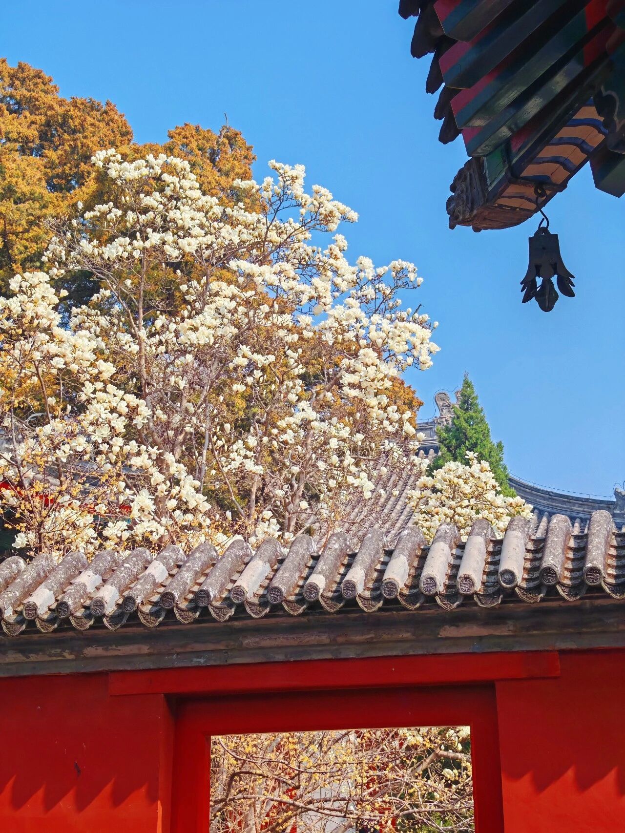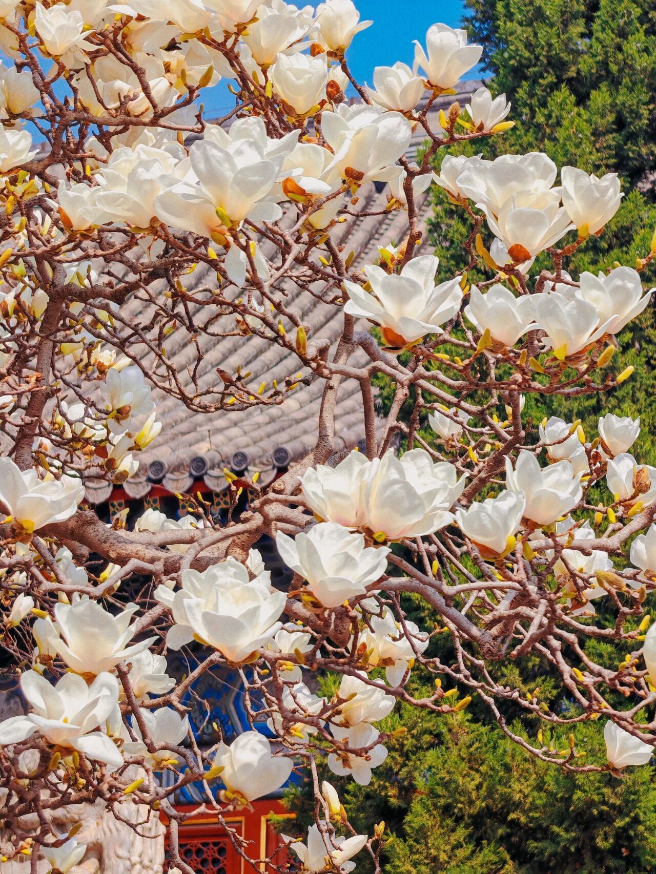2.尝试不同角度:低角度仰拍,可凸起玉兰花的挺拔清丽;高角度俯拍,能展现古寺与玉兰相映的全貌;侧面取景,则更能发达玉兰花舒展优雅的姿态。