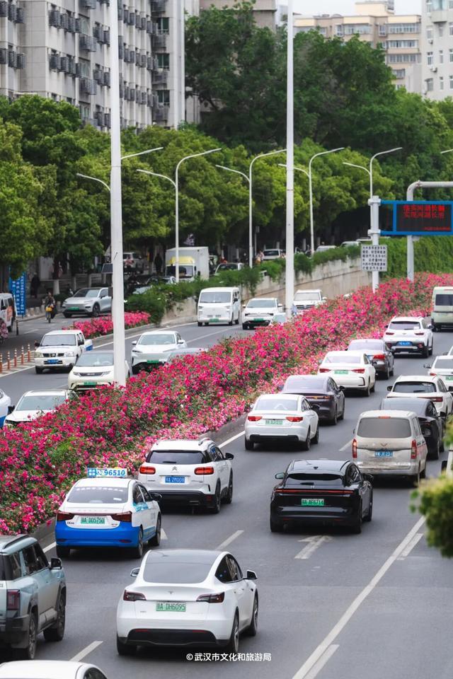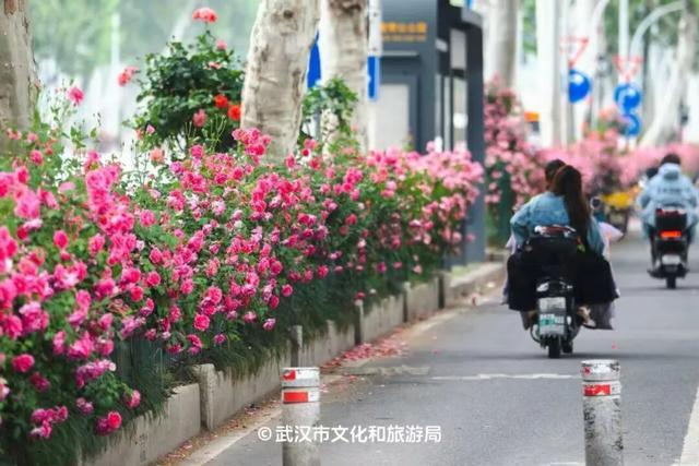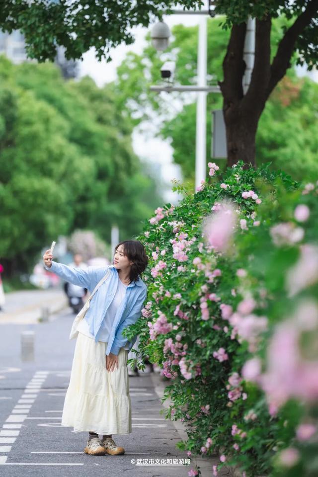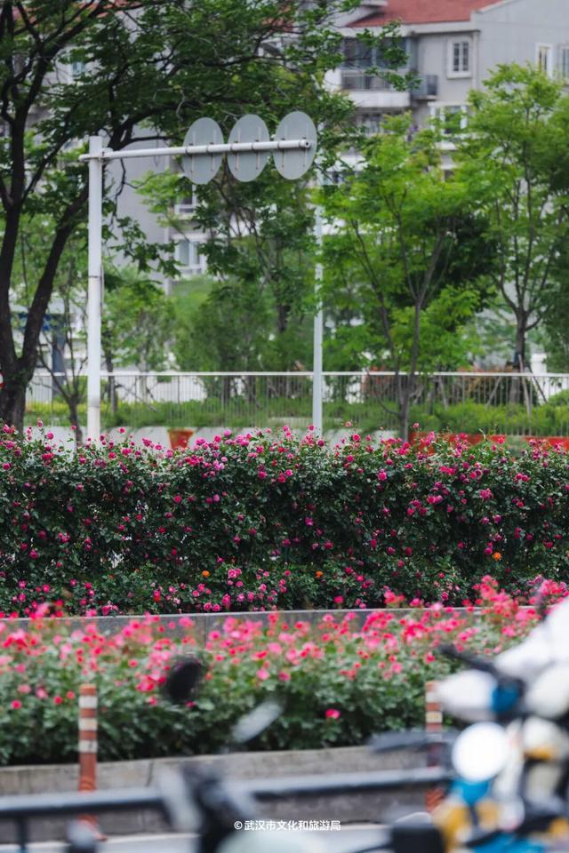 珞狮路,武汉首条“全月季”景不雅大路,皆东谈主高的花墙已开得热插手闹,沿途绵延5.5公里。