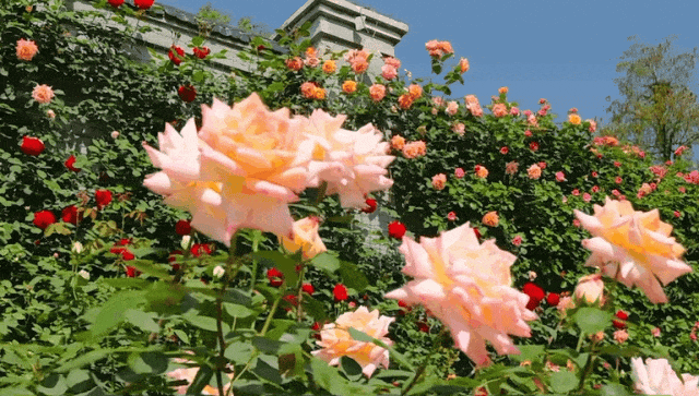 周末转晴,气温升至30℃,扛过了风雨的蔷薇和月季将迎来怒放期,一直开到5月中旬,遮掩五一小长假期,来玩!
