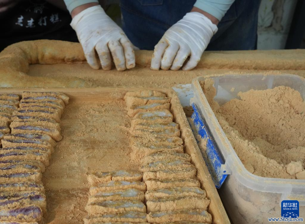 10月11日,别称商户在满觉陇街边制作桂花打糕。