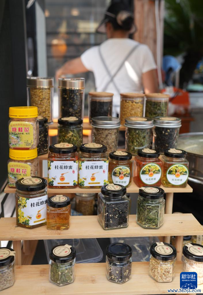 一家街边商铺排列的桂花制作的食物(10月11日摄)。