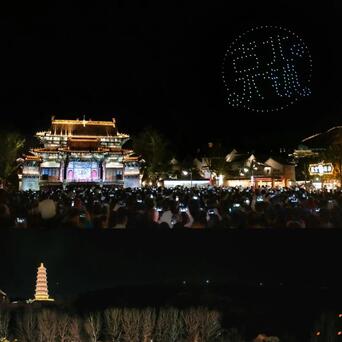 跨年无东说念主机:23:57,400架无东说念主机在日月岛广场上空构成荡漾东说念主心的时钟图案,零点倒计时 。