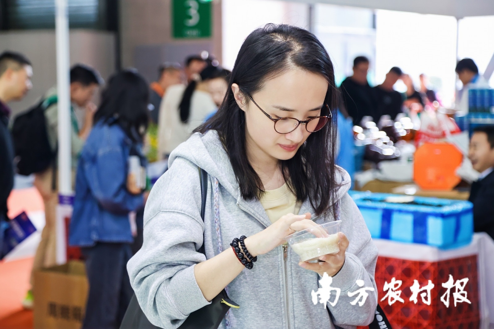 在英德市稻香老农栽种专科合作社展位前,东说念主头攒动,来洽谈疏导的客商源源连续。“早上9点,这里就还是东说念主山东说念主海,采购商、吃亏者齐很关爱,许多客户齐留住了磋商样式。”合作社发起东说念主林元信对再次参展信心满满。