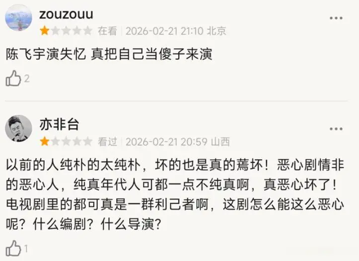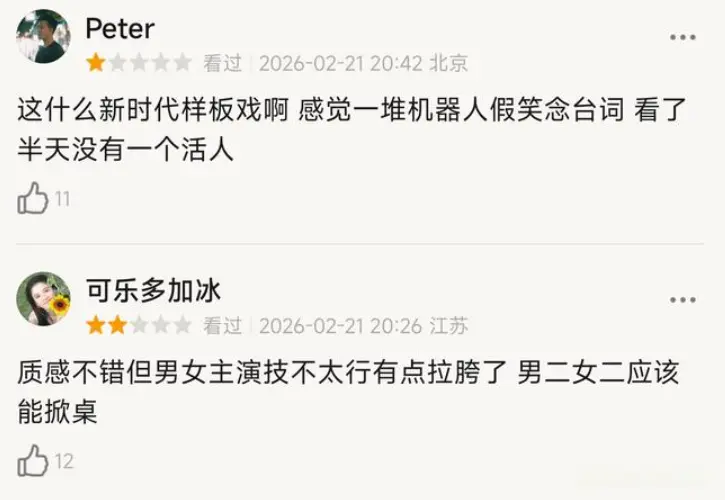 整个东说念主目光直愣愣的,有技术还飘忽不定,说台词如同比葫芦画瓢,和剧中的一些老演员对戏就能看出他的演技太青涩。