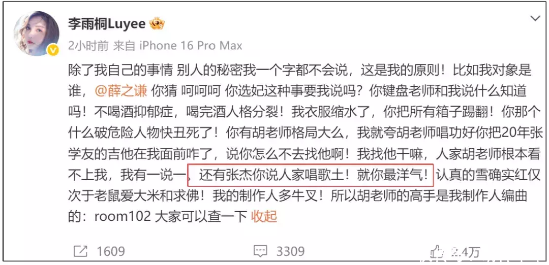 李雨桐撕薛之谦出轨未晒凭据,却连带了一圈文娱圈东说念主物开云体育,比如爆料薛之谦私下面说“张杰唱歌土”等,又让张杰堕入了公论风云。但万万没念念到的是张杰的细君谢娜出来开撕了,叱咤薛之谦的言行伤害了张杰,喊话薛之谦说念歉。