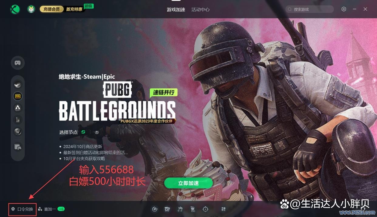 通用兑换码:556688,就可以白嫖加快器免费时长了