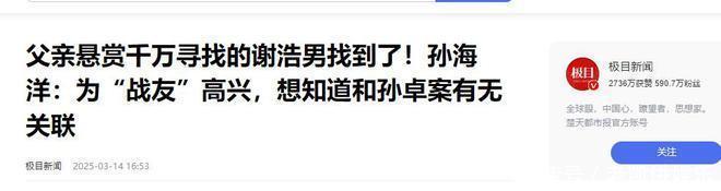 父亲赏格千万寻找的谢浩男找到了!孙海洋:为“战友”欣慰,念念知谈和孙卓案有无关联极目新闻2025-03-14