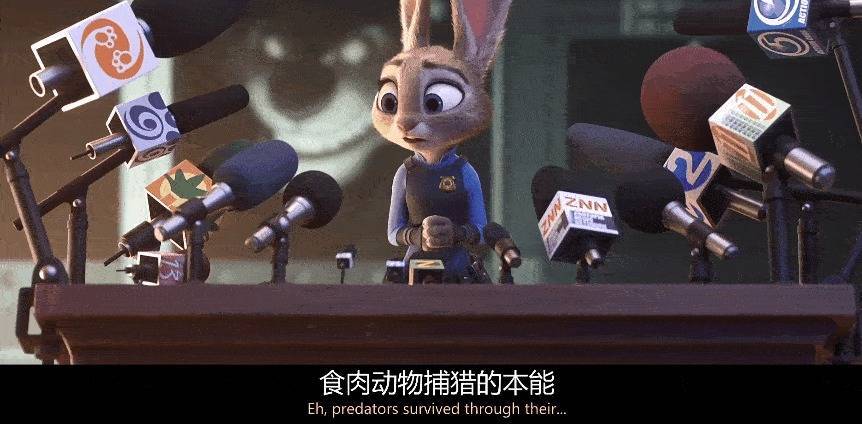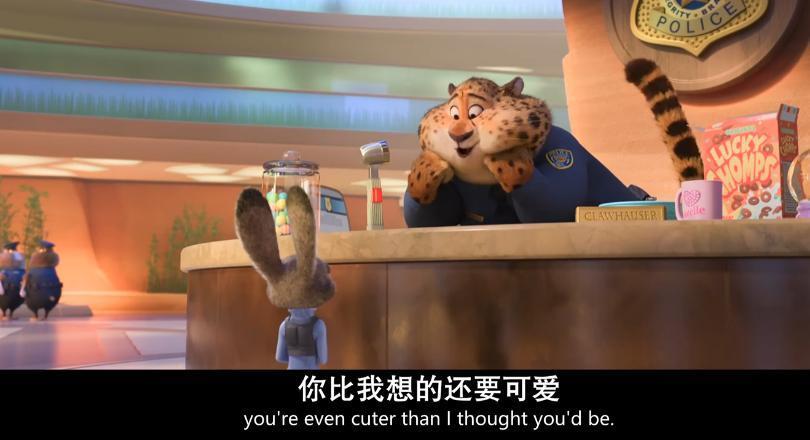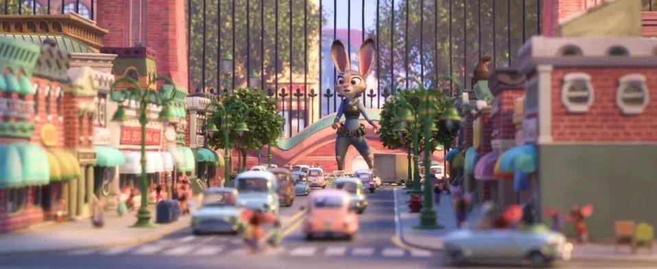 兔朱迪一参预警局,镜头就给你一种不对等的嗅觉,从朱迪的视角看畴昔,只可看见其他动物的屁股。
