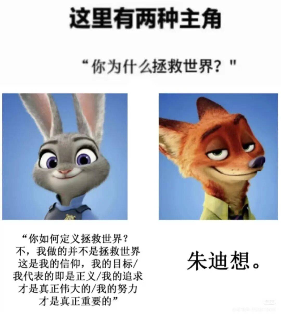 朱迪身上的正义与期望,领有了前所未有的刚直性,不错不管三七二十一,以至包括阿谁每次都为他兜底的亲密伙伴的抚慰,还要更狼子野心地补上一句:“咱们不一样”。