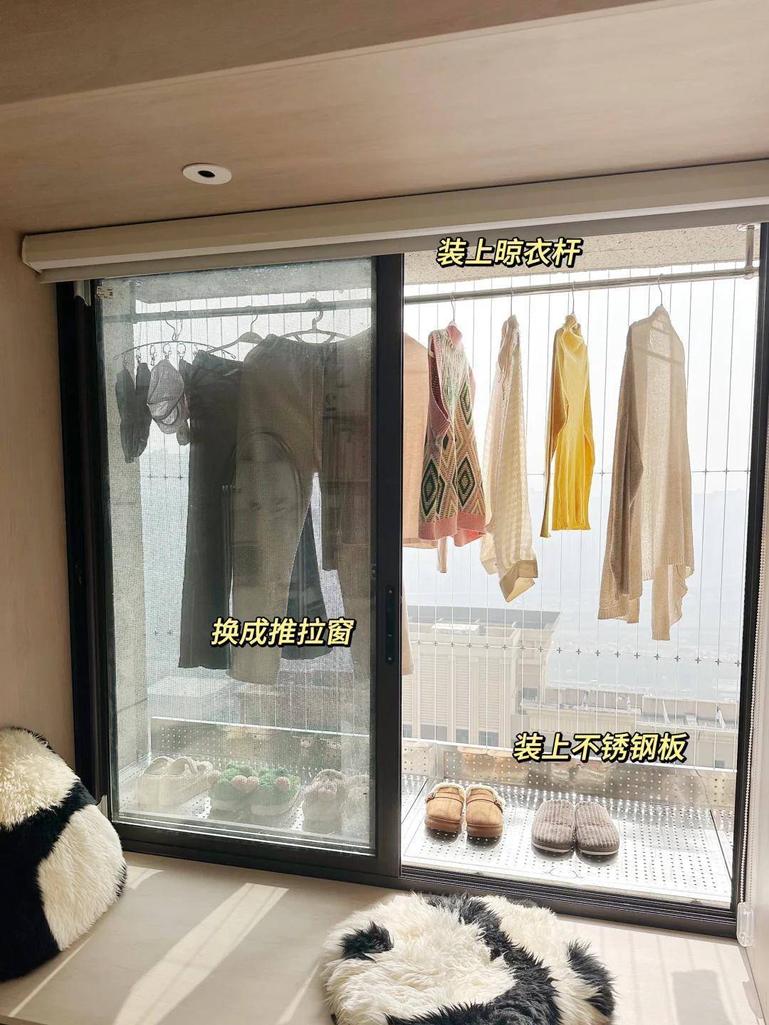 五、设置平台改晾衣区:空调外机旁,藏着一个 “晾衣间”?许多东说念主不知说念,空调设置平台也能晾穿戴!装上驻守网防掉落,再铺块不锈钢板滤水开yun体育网,终末装几根晾衣杆,一个好意思妙晾衣区就处理了。拉上窗帘,从外面十足看不到,阳台就能腾出来种花、喝茶,险些太惬意了!