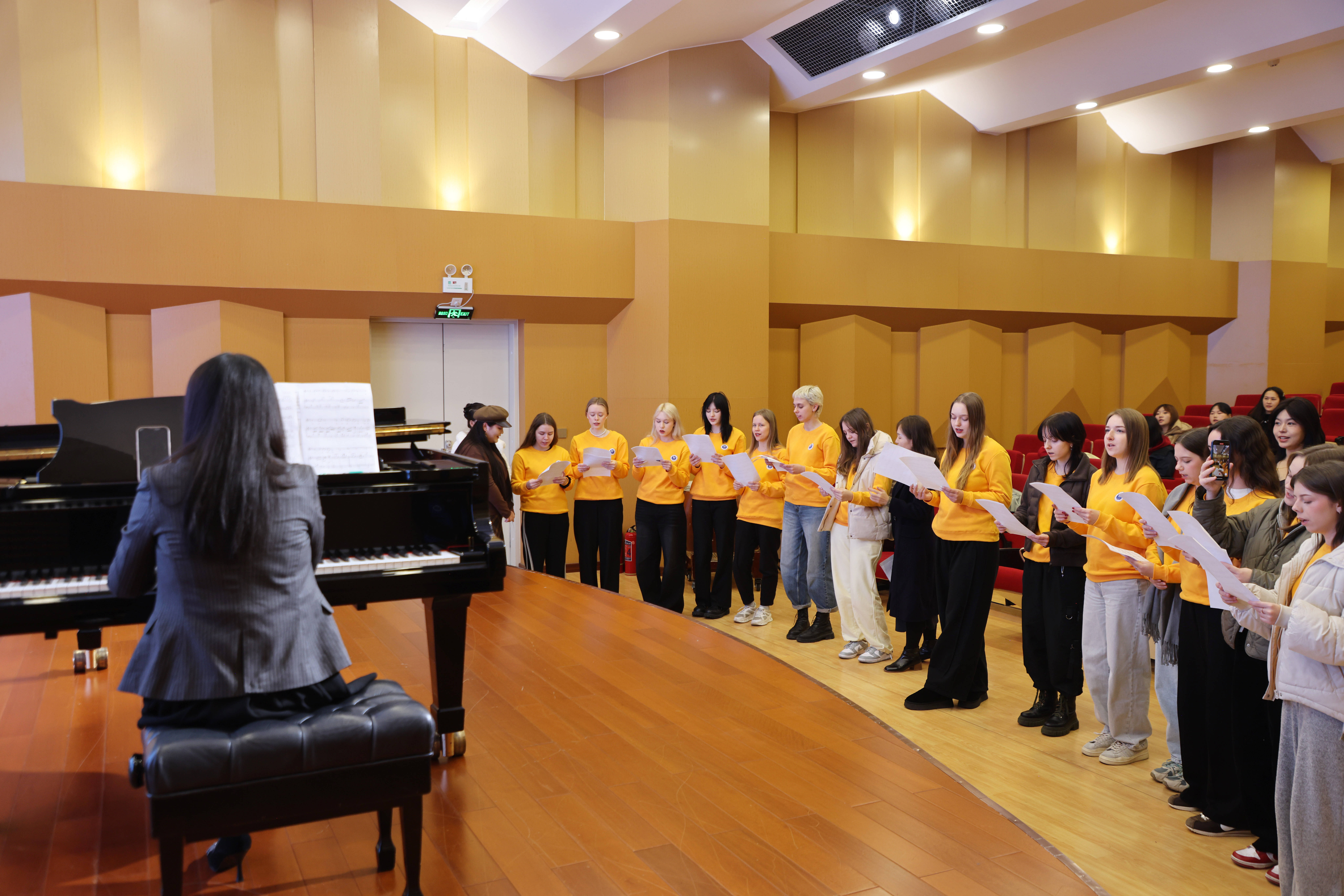 11月12日,白俄罗斯后生学子在宁夏师范大学参预音乐举止。新华社发